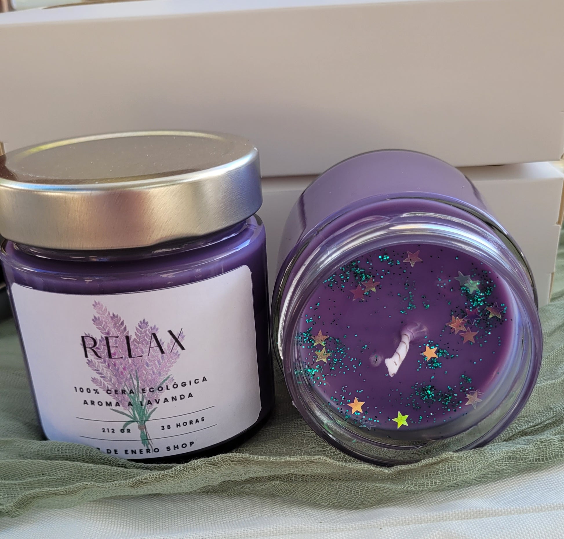Con la vela Relax, el aroma a lavanda te transporta a un campo en calma, ayudándote a desconectar del ruido del día.